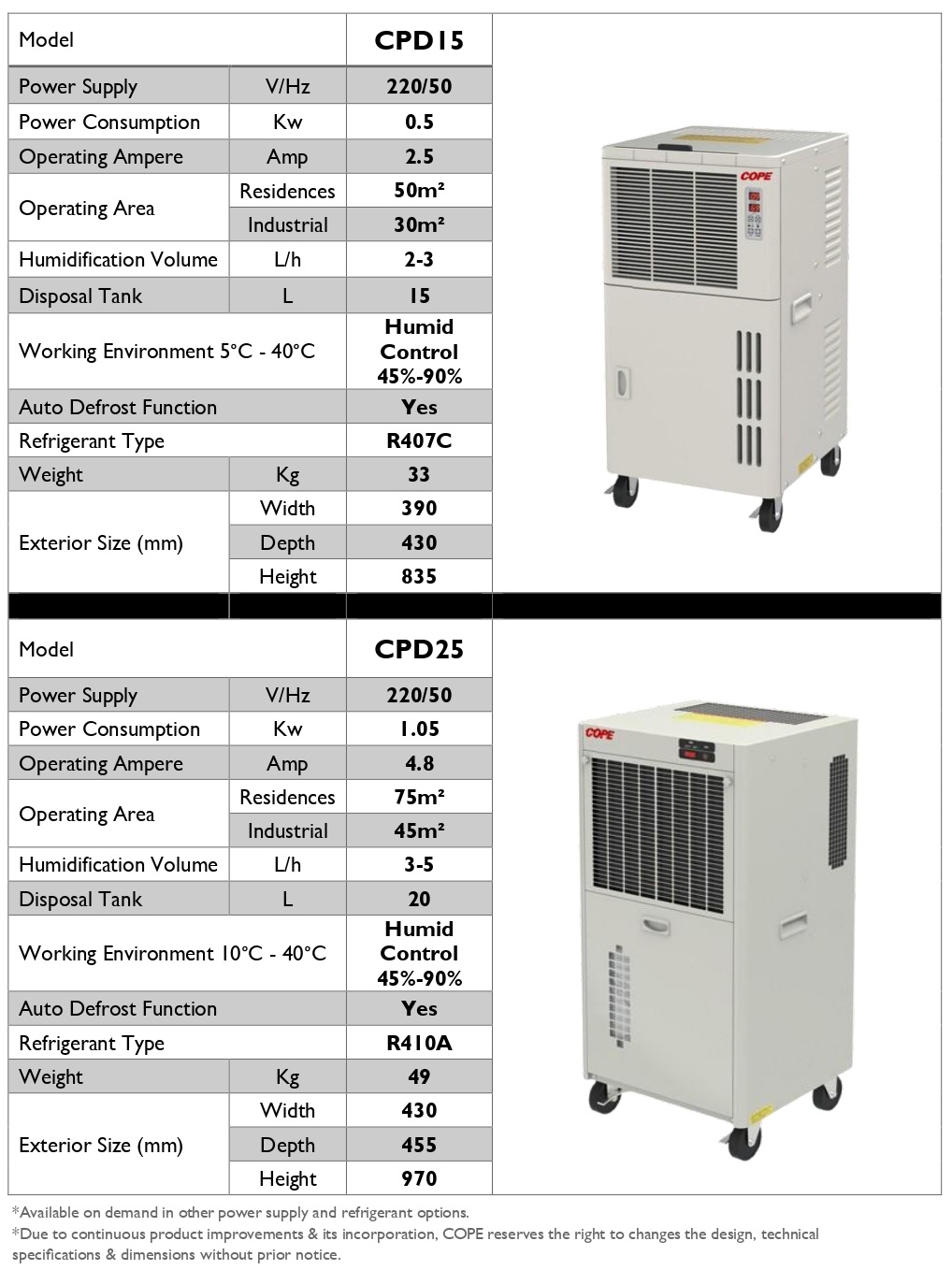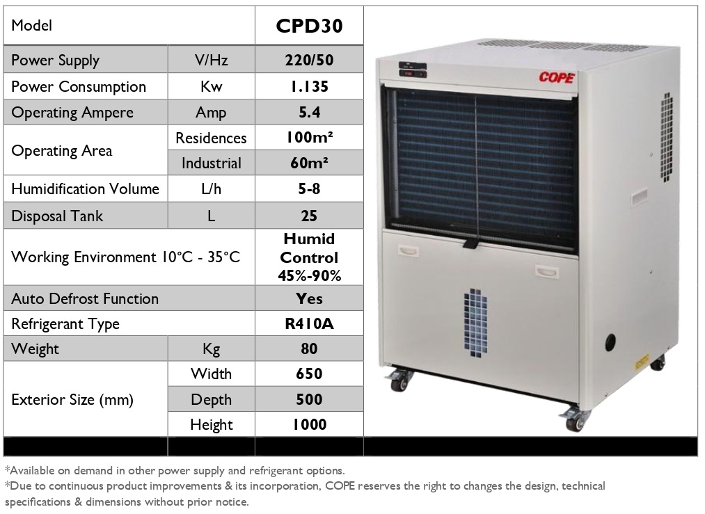 COPE Dehumidifiers are built with eco-conscious performance in mind. Each unit uses R410A refrigerant, an environmentally friendly coolant that not only meets global green standards but also improves energy efficiency.